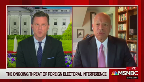 As the 2020 presidential election fast approaches, so do media attempts to incite voter hysteria about the chances of it being stolen. On Tuesday's Morning Joe, dutiful MSNBC co-host Willie Geist brought on left-wing author David Shimer and former Obama Homeland Security Secretary Jeh Johnson to try to rebuild the Russian election interference narrative.