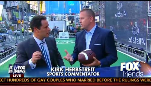 During an appearance on Fox and Friends, ESPN football announcer Kirk Herbstreit criticized NBC Sports anchor Bob Costas for talking politics while announcing a game when most Americans just want to watch the game.