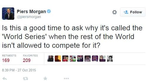 Piers Morgan Whines on Twitter Overseas Teams Can’t Be in World Series