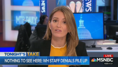 Often inaccurate MSNBC host Katy Tur had the knives out from the get-go during Monday’s MTP Daily. From the opening intro, she was looking to get a piece of White House Chief of Staff John Kelly, even going so far as to question why the former Marine Corp general continued to be employed by the White House. Tur and her panel essentially were calling for the Gold Star father to be fired.