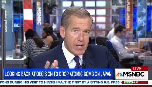 MSNBC breaking news host and ex-NBC Nightly News anchor Brian Williams was allowed out on MSNBC’s airwaves early Friday afternoon to discuss President Obama’s visit to Hiroshima and in the course of that, Williams threw some shade in the direction of the U.S. military and then-President Harry Truman by complaining that “we’re the only nation to have used them in anger” against the horrifying Axis…