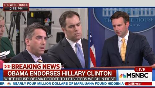 Fox News reporters and a select number of others have been known to grill White House Press Secretaries in the Obama years and Thursday saw another installment as the Fox News Channel’s chief Washington correspondent James Rosen hammered current Press Secretary Josh Earnest on subjects ranging from President Obama’s Hillary Clinton endorsement to her e-mail scandal.