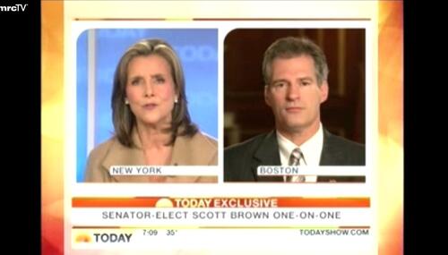 NBC's Meredith Vieira, on Wednesday's Today show, rained on Scott Brown's parade as she wondered if the Senator-Elect's post-victory call to Ted Kennedy's widow Vicki was an awkward moment since, as the Today co-anchor pressed, "You plan to do whatever you can to derail...the cause of his lifetime?" [Audio available here]MEREDITH VIEIRA: You know on a personal note, you said last night the…