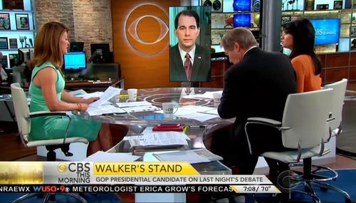During an interview with Wisconsin Governor Scott Walker after the first GOP presidential debate, CBS This Morning’s Norah O’Donnell repeatedly badgered the Republican over Donald Trump’s performance during Thursday night’s debate.