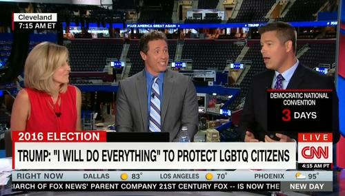 As Wisconsin Republican Rep. Sean Duffy appeared as a guest on Friday's New Day to discuss Donald Trump's acceptance speech at the Republican National Convention, the CNN anchor duo of Chris Cuomo and Alisyn Camerota both fretted over Trump promising to defend homosexuals from terrorists without going to the left in supporting gay rights issues. Cuomo at one point slammed running mate Mike Pence…