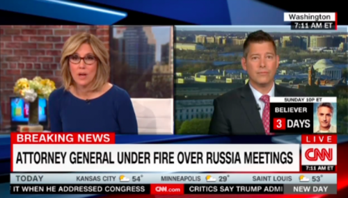 On CNN's New Day Thursday, co-host Alisyn Camerota interviewed Wisconsin Republican Representative Sean Duffy about the developing news that Attorney General Jeff Sessions interacted with the Russians during the Trump presidential campaign, depsite then-Senator Sessions testifying during his confirmation hearing that although he served as a campaign "surrogate," he "did not have any…