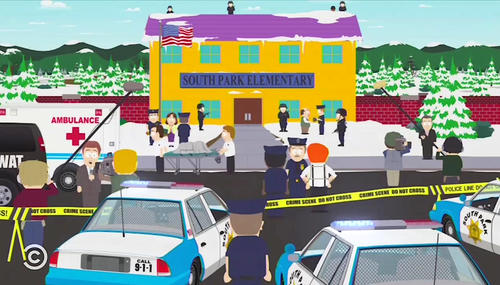 South Park once again opened up their latest season by intentionally embroiling themselves in controversy over a touchy subject. Forget about depicting the Prophet Mohammed, the Comedy Central show's 22nd season began on Wednesday with 5 school shootings, all met with little reaction from the townsfolk.