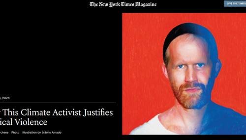 News You Can Use? Sunday’s New York Times Magazine ran a bizarre, almost Freudian interview from the environmental violence fringe, “How This Climate Activist Justifies Political Violence.” It was a strange, cringeworthy interview where both sides revealed rather too much of their own personal demons. Marchese conveniently cited favorable mainstream press coverage, including in the…