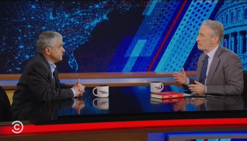 Jon Stewart welcomed Harvard Prof. Steven Levitsky to Comedy Central and Monday’s edition of The Daily Show to promote his new book, Tyranny of the Minority, where he wondered if the Constitution is to blame for the “mess” the country finds itself in.