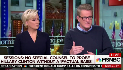 On Wednesday’s Morning Joe, the panel breathed a collective sigh of relief over the news that during yesterday’s House Judiciary Committee hearing, Attorney General Jeff Sessions rebuffed the notion that he would launch a special prosecutor’s investigation against the Clintons for their alleged corrupt conduct related to the Russian acquisition of Uranium One. The liberal pundits proceeded to…