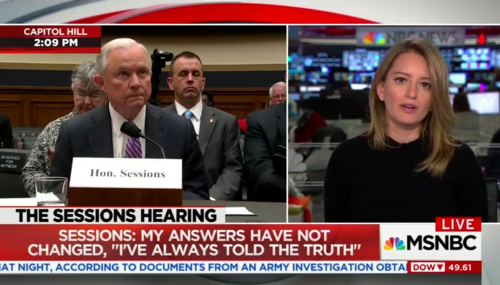 During breaks in MSNBC’s live coverage of Attorney General Jeff Sessions testifying before Congress on Tuesday, anchors Andrea Mitchell and Katy Tur were both aghast that congressional Republicans urged the nation’s top law enforcement official to launch an investigation into numerous scandals swirling around Bill and Hillary Clinton.