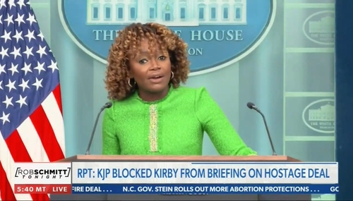 On Thursday afternoon, the great Steven Nelson of the New York Post put more meat on the bone regarding reports bumbling, fumbling, stumbling White House Press Secretary Karine Jean-Pierre barred national security advisor and spokesman John Kirby from speaking to reporters about the Israel-Hamas ceasefire and hostage deal because she didn’t want arguably the only adult in the Biden…
