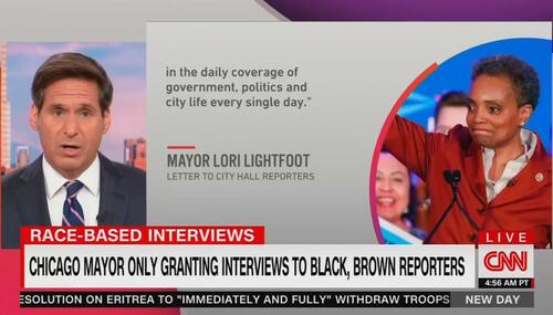 The mayor of Chicago has instituted a racist new policy, saying she will only give one-on-one interviews to Black or Brown journalists. The shocking and blatantly discriminatory move has been buried by network press. So far, ABC, CBS and NBC have totally ignored the story and CNN has allowed minimal coverage, but defended Lori Lightfoot’s move as a win for diversity and that no one should be “…