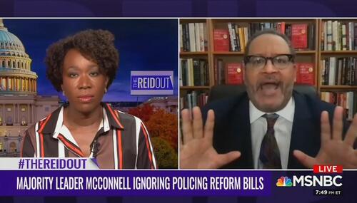 Thursday night’s ReidOut featured one of the ugliest news segments one will ever see. Over the course of eight-plus minutes, MSNBC host Joy Reid and far-left race-hustler Michael Eric Dyson viciously condemned Senate Majority Leader Mitch McConnell (R-KY) as a “racist,” “terrorist,” ventriloquist (or “geppetto”) controlling black Kentucky AG Daniel Cameron (R), and worshipper at “the altar of…