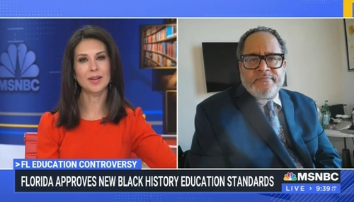 Florida has come out with their new curriculum guidelines for African-American history and MSNBC’s Ana Cabrera invited Vanderbilt Prof. Michael Eric Dyson on to her Thursday show to talk about how they allegedly are comparable to teaching that there were good things about the Holocaust.
