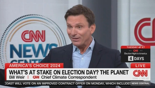 Between Friday and Saturday, CNN ran reports by chief climate correspondent Bill Weir painting the climate as being at stake in the presidential election, heavily hinting that Democrat Kamala Harris would be better for the climate than Republican Donald Trump. he said "Imagine if Abraham Lincoln had lost in the 1860s or if Reagan had ignored the generals about the Soviet Union."